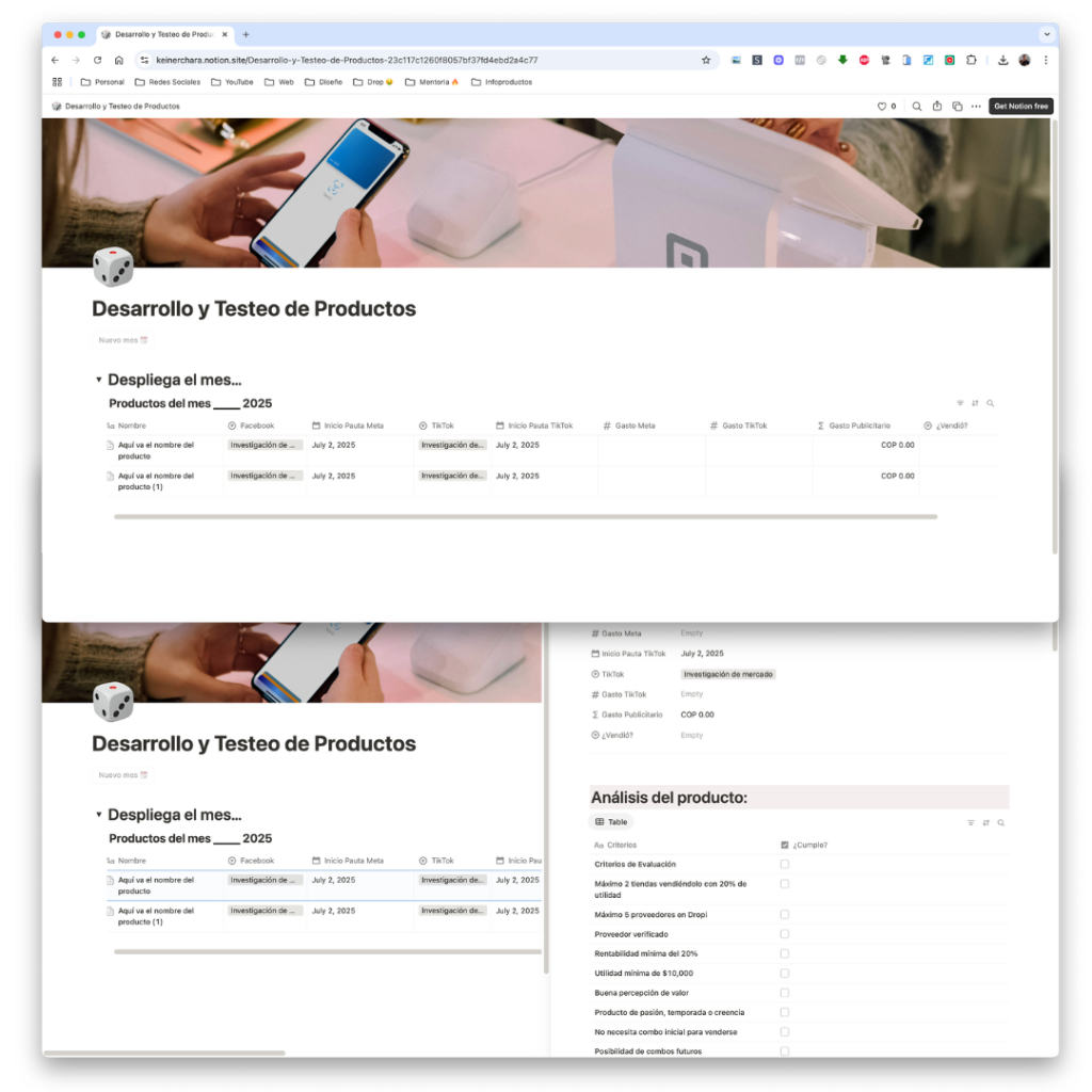 Plantilla Notion – Desarrollo y Testeo de Productos para Dropshipping