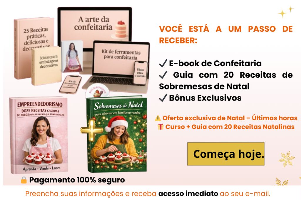 E-book sobre empreendedorismo na confeitaria + guia com 20 receitas de sobremesas natalinas