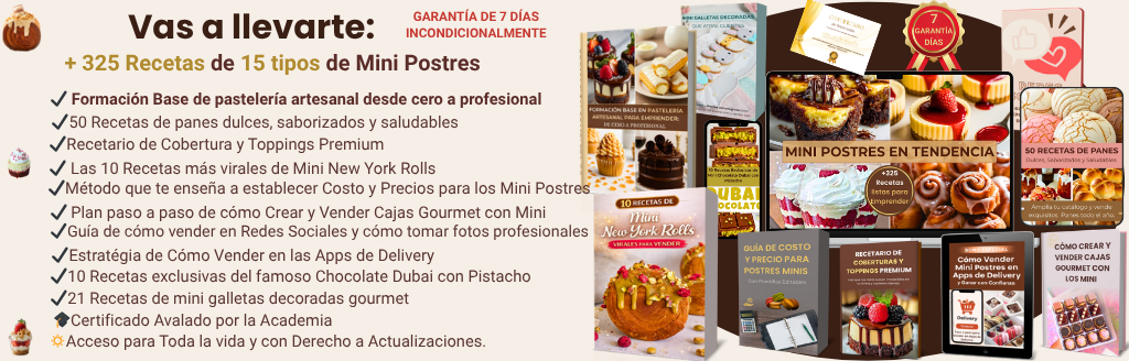 ¡Añade a tu compra el Recetario de 20 Mini Alfajores de Brownies Premium por un precio exclusivo! Descubre cómo hacer Mini Alfajores Creativos en Tendencia con nuestras recetas secretas paso a paso. Perfectos para impresionar a tus clientes con sabores únicos y presentaciones elegantes. Este recetario no solo enriquecerá tu catálogo, sino que también te ayudará a elevar tu negocio de repostería. ¡Aprovecha esta Oportunidad Irrepetible , solo disponible aquí!