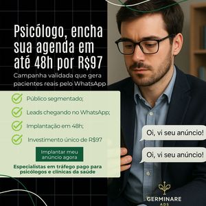 Na mentoria você aprende a gerar leads. Com este kit exclusivo, você descobre como transformar esses contatos em pacientes pagantes, usando scripts prontos, respostas a objeções e follow-ups testados. Este material é prático, rápido e feito para psicólogos, terapeutas e outros profissionais da saúde que querem aumentar suas conversões no WhatsApp sem complicação.