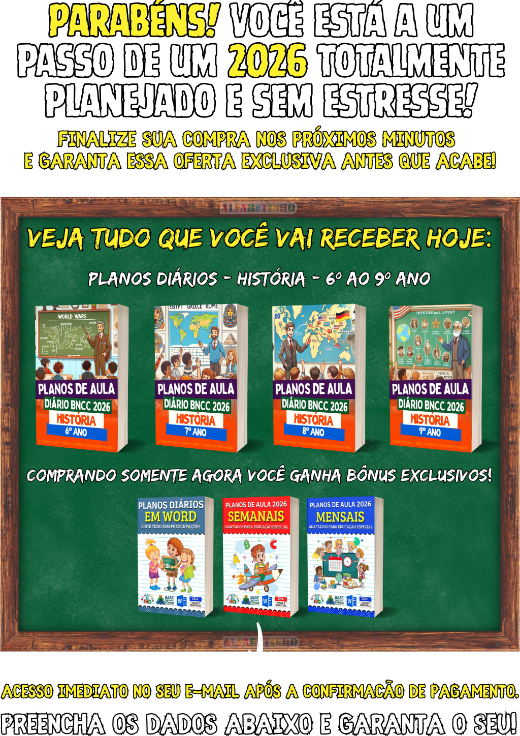 512 Atividades e 400 Planejamentos, todos organizados por Ano e Bimestre, de acordo com a BNCC 2026. perfeitas para uso imediato. 🎁 GANHE BÔNUS EXCLUSIVOS: 1️⃣ PLANEJAMENTOS EM WORD 2️⃣ ATIVIDADES EM WORD 3️⃣ GABARITOS DAS ATIVIDADES 4️⃣ 32 PLANOS DIÁRIOS 5️⃣ 24 PLANOS SEMANAIS 6️⃣ 16 PLANOS MENSAIS 😱 DESCONTO IMPERDÍVEL, APENAS AGORA!