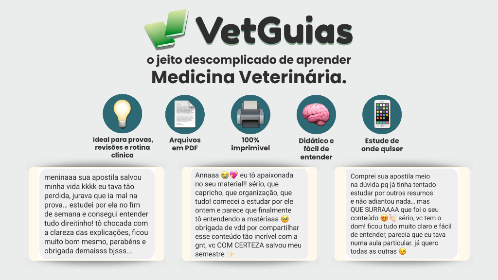 Complemento essencial para sua evolução na clínica Leve também o Box de Clínica Médica de Pequenos Animais e tenha acesso a apostilas completas com fisiopatologia, sinais clínicos, diagnóstico e tratamento das principais doenças da rotina veterinária. ✔ Ideal para estudantes e recém-formados ✔ Consulta rápida e revisão prática ✔ Atualizações mensais inclusas, sem custo extra 👉 Um material que acompanha você da faculdade ao início da prática clínica.