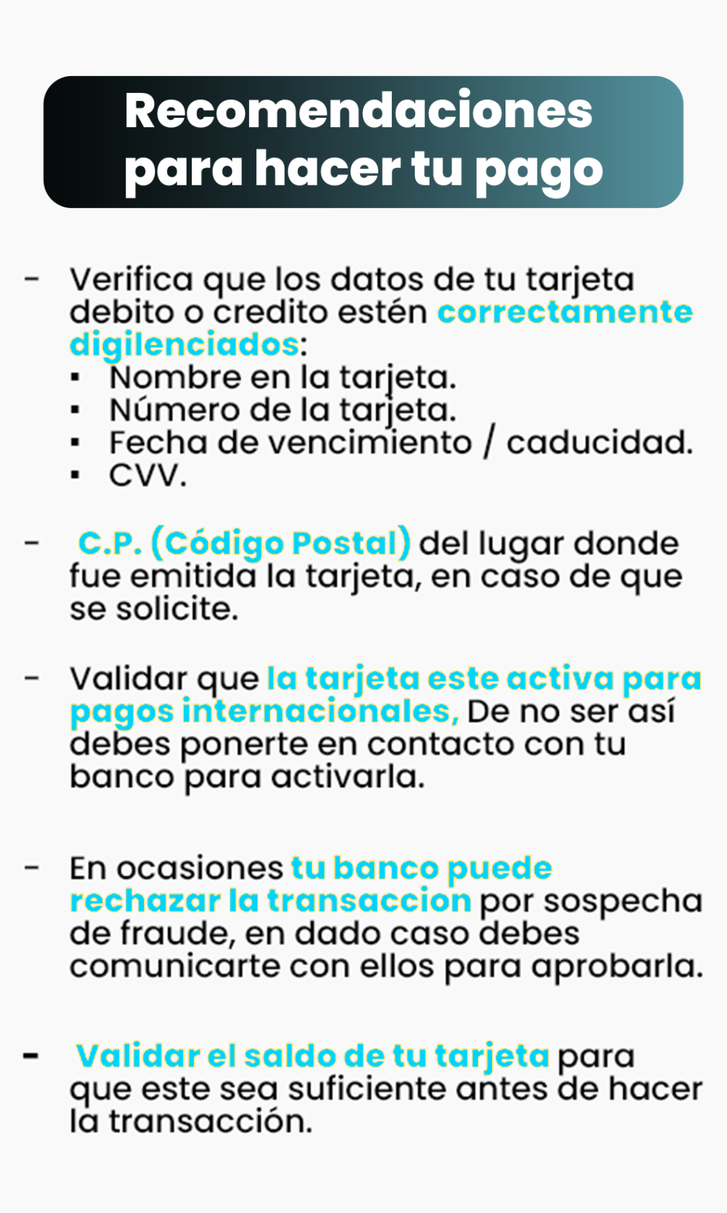 Datos del método de pago