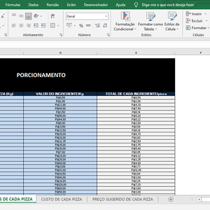 PLANILHA DE CUSTOS DE PIZZAS - EBOOK 101 SABORES DE PIZZAS