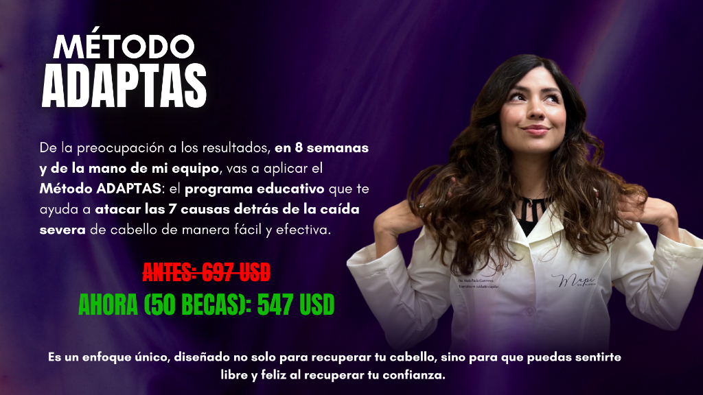 La línea Pro Cabello de Mapisinalopecia: Shampoo + Acondicionador + Tónico Capilar - LIBRE DE TÓXICOS. Precio normal: 110 dólares. Precio con descuento por ser estudiante: 79 dólares.