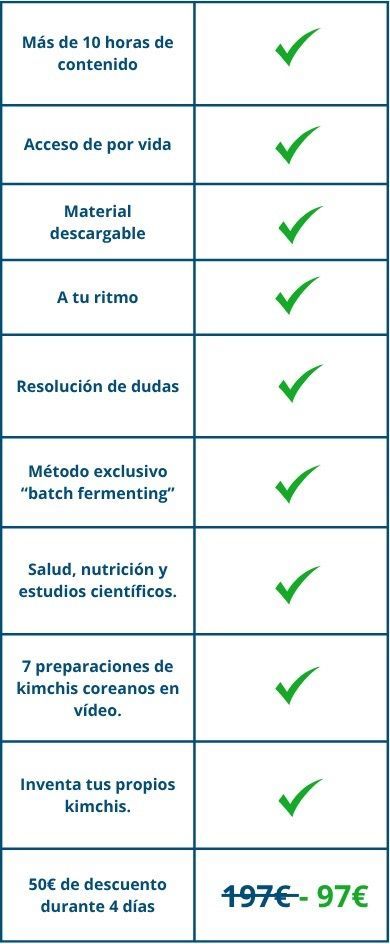 ¿Qué encontrarás en "Fermenta desde 0"? - Un curso completo, pensado tanto para principiantes como para quienes llevan años fermentando y buscan nuevas ideas y conocimientos científicos. - Recetas y métodos innovadores, sencillos de seguir, y siempre respaldados por la ciencia en nutrición y microbiología. - Más de 65 vídeos en los que te enseño cómo fermentar de forma segura, junto con materiales descargables para que puedas seguir cada paso a tu propio ritmo. - ¡Acceso de por vida!
