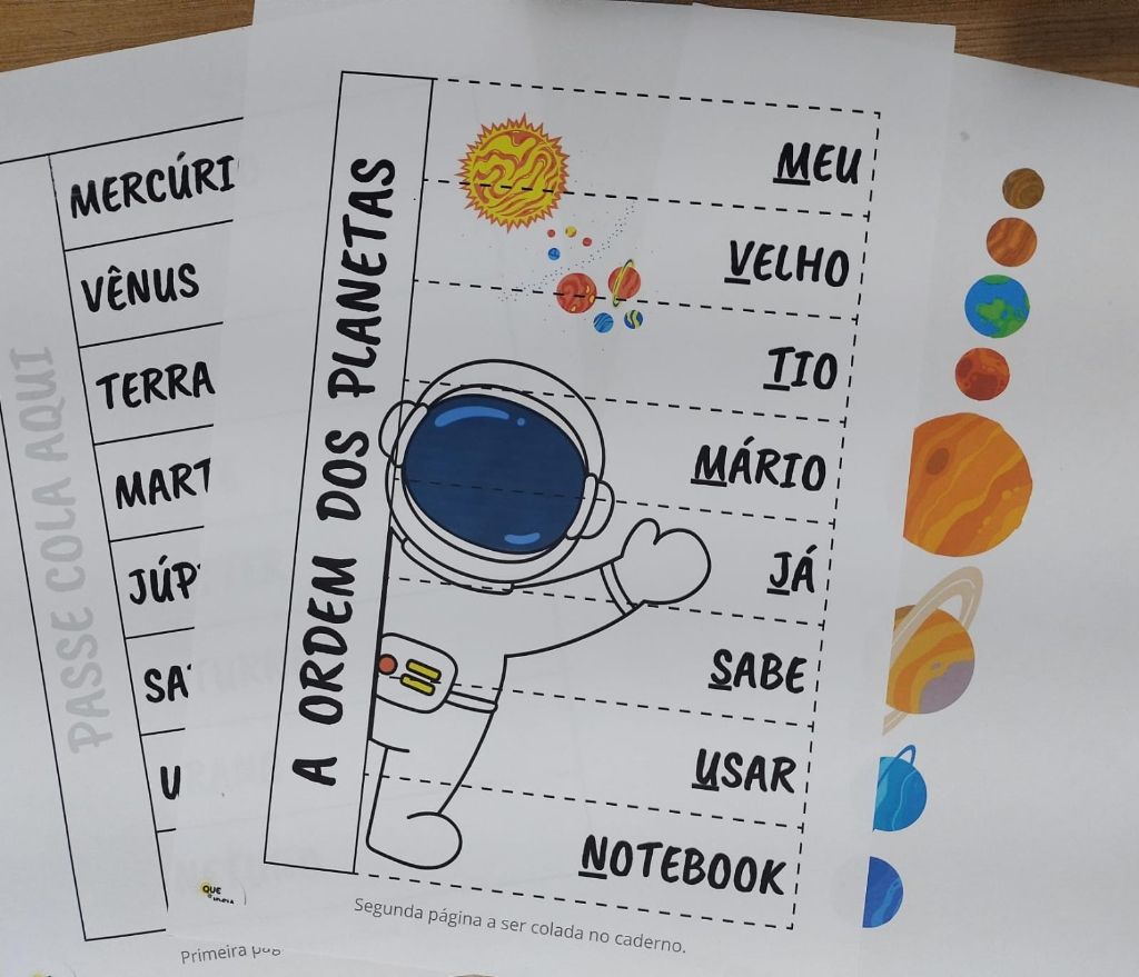 Com ilustrações atrativas e um formato prático, os estudantes aprenderão um truque simples que os ajudará a lembrar facilmente o nome e a posição de cada planeta. Além de reforçar o conhecimento, essa atividade desperta a curiosidade e incentiva a exploração do tema de forma natural e divertida.