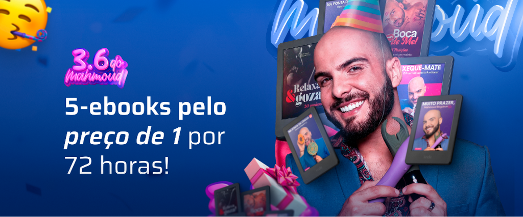 Um combo completo com todos os ebooks do Mahmoud ( Muito Prazer, Xeque Mate, Na ponta da Língua, Boca de mel e Relaxa e Goza ) .Promoção válida somente dia 29,30 e 31/03