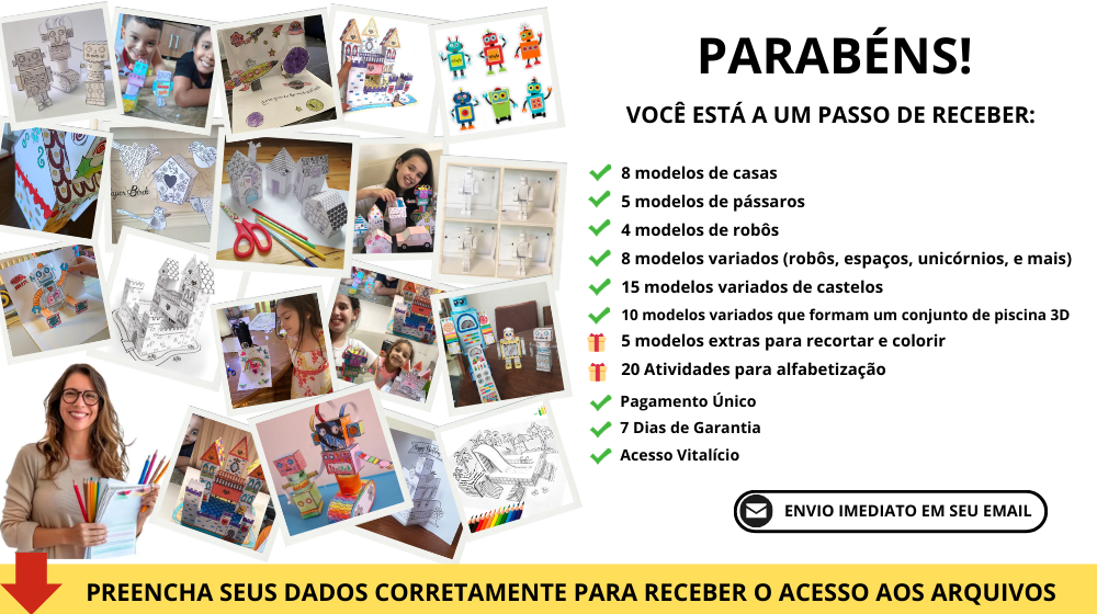 Mais 3 moldes prontos para recortar colorir e construir