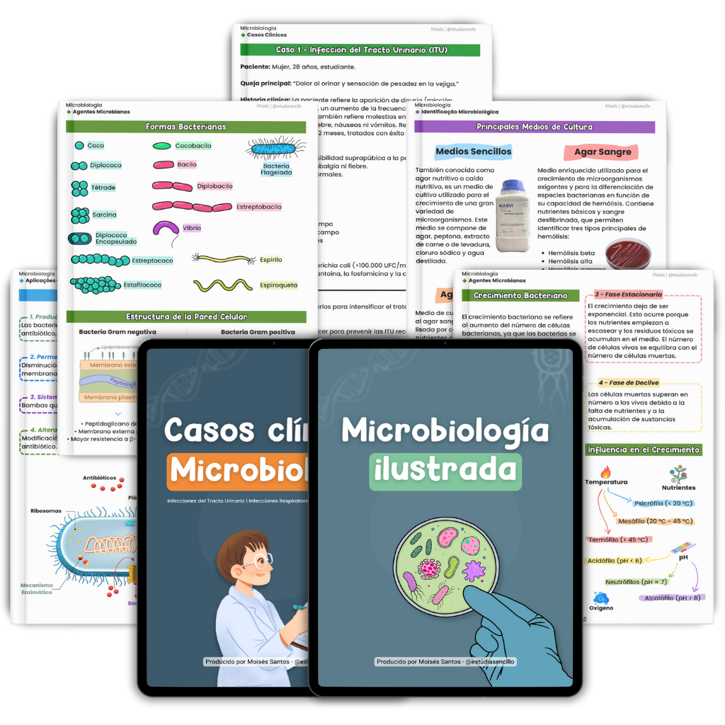 El complemento perfecto para Microbiología ✅ Espectro por familias y patógenos más comunes ✅ Elección empírica rápida (ITU, respiratorias, piel/tejidos) ✅ Dosis, rangos y ajustes por función renal ✅ Contraindicaciones, efectos adversos e interacciones clave ✅ Fichas por fármaco: mecanismo, indicaciones, PK/PD ✅ Tablas imprimibles para consulta rápida en guardia o clase ✅ Resistencia bacteriana: mecanismos y cómo evitarla en la práctica
