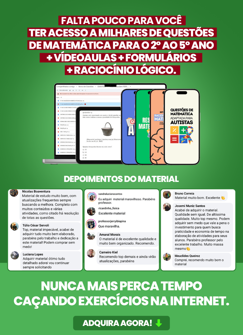 Prontas para usar, todas acompanhadas de resoluções detalhadas para facilitar sua correção e explicação. Ideal para professores, escolas e pais, esse material economiza tempo, acelera o planejamento e permite personalizar cada atividade conforme a sua necessidade. ✔️ Totalmente editável ✔️ Questões organizadas por ano ✔️ Pronto para imprimir ou adaptar Perfeito para montar atividades, provas, revisões ou reforço escolar em minutos, sem perder tempo e com total liberdade.
