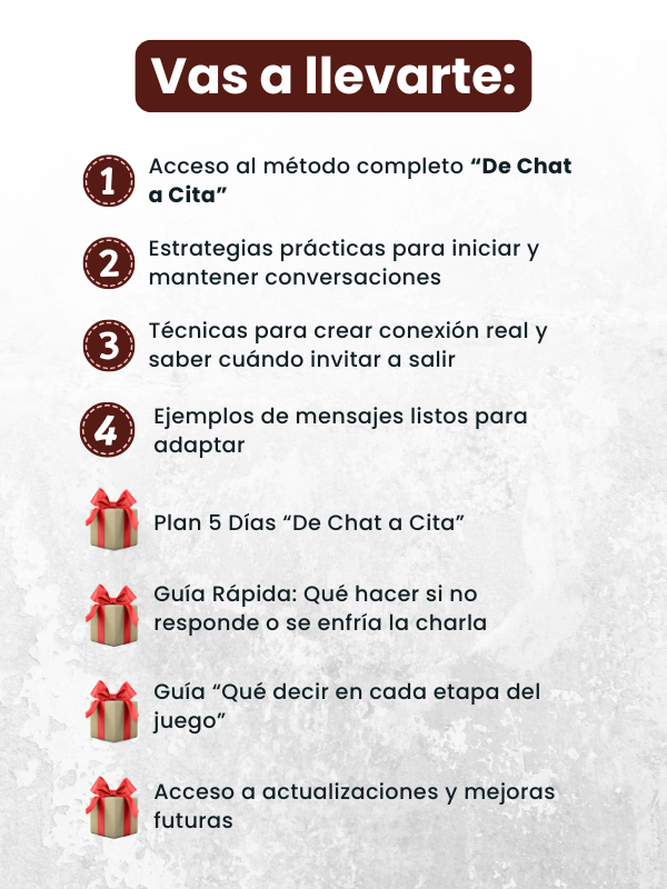 "Me costaba mucho empezar conversaciones, pero gracias a este ebook, he mejorado mis habilidades de chatting. Ahora, ¡he conseguido varias citas! Me siento más confiado y motivado."