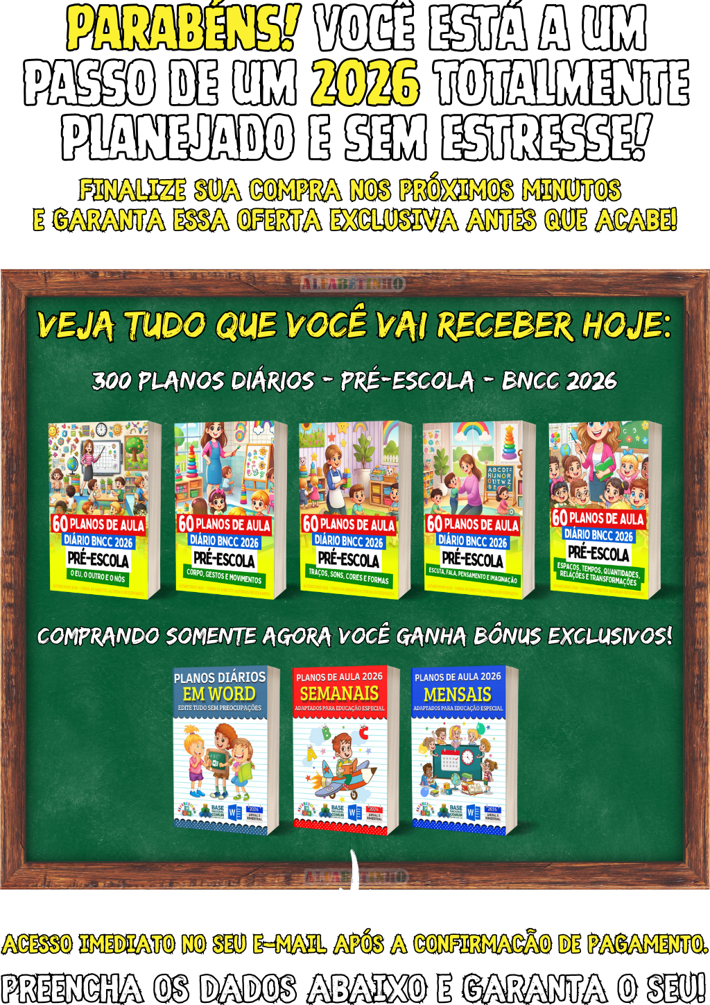 300 PLANOS DIÁRIOS - PRÉ-ESCOLA - 2026