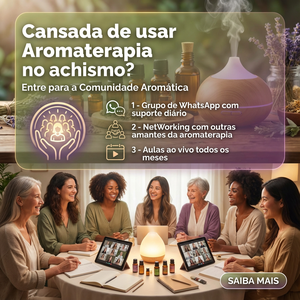 A Comunidade Aromática funciona como um GPS: comunidade ativa, respostas para dúvidas reais, aulas ao vivo mensais e um caminho estruturado para aplicar aromaterapia com segurança ou transformar isso em renda.