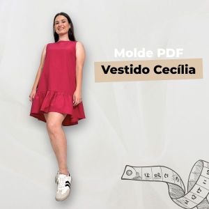 Vestido Cecília - Aula de Costura + Molde PDF - Modelo vestido trapézio com babado (do 36 ao 46)