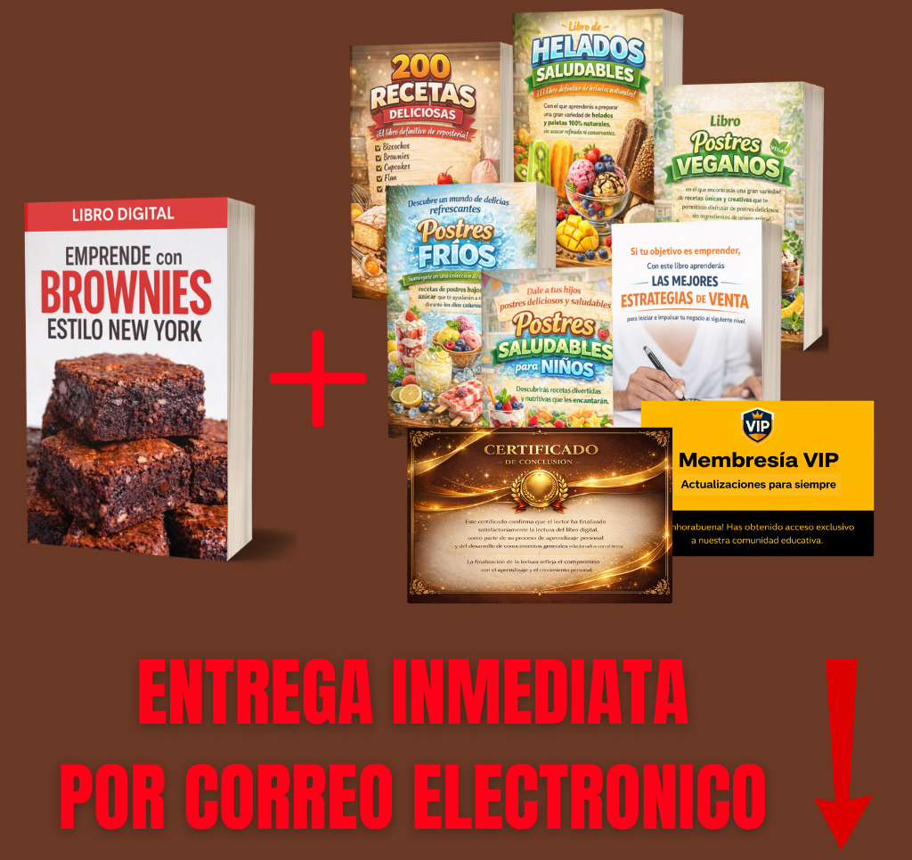 Accede a recetas adicionales fáciles y vendibles para ampliar tu menú de brownies, ofrecer más opciones a tus clientes y aumentar tus ventas sin complicar la producción.