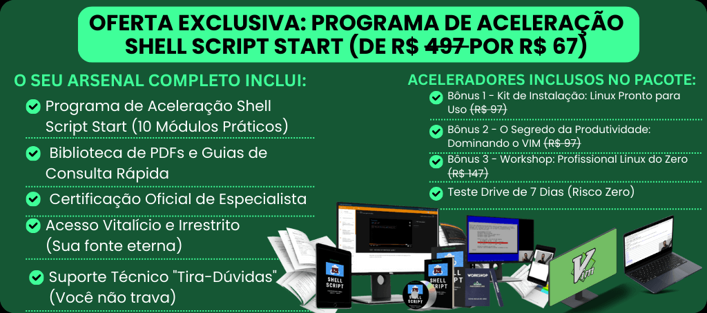 🔒 SIM! Quero Destravar o "Cofre Pessoal" de Scripts do Pedro Não perca tempo reinventando a roda. Adicione ao seu pedido minha Coleção Privada com 50 Scripts de Batalha. Estes não são apenas exemplos acadêmicos — são as ferramentas reais que eu uso em consultorias para automatizar servidores em empresas. Copie, cole, adapte e entregue resultados profissionais desde o primeiro dia.