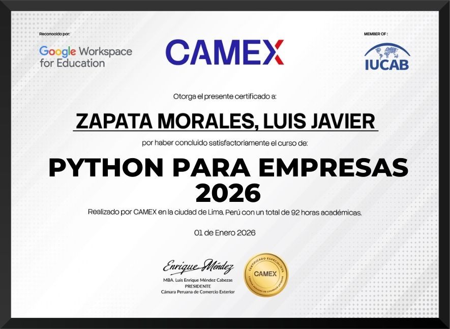 Curso práctico de Python orientado al entorno empresarial, abordando fundamentos, estructuras de control, automatización, manejo de datos y desarrollo de proyectos aplicados para optimizar procesos y análisis organizacional.