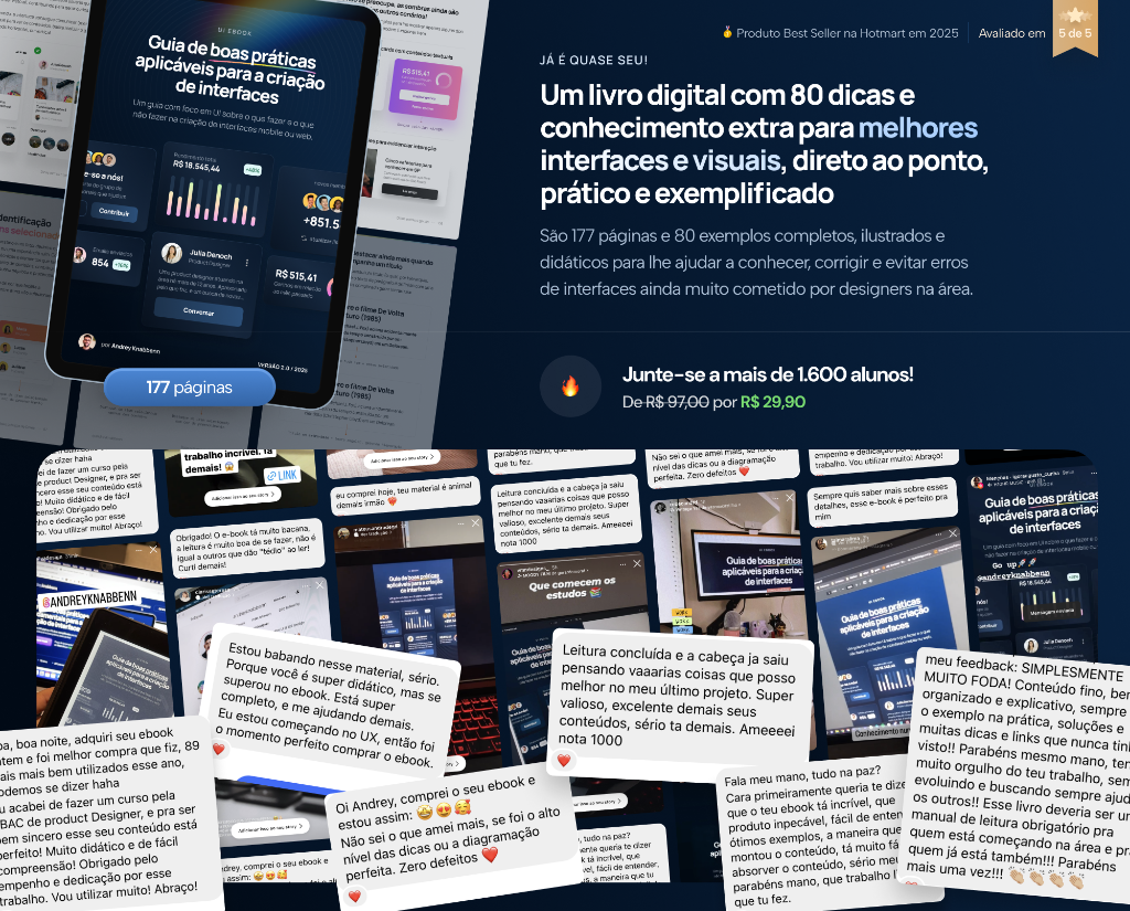 O Intuitive Start é um curso prático de Figma! Onde lhe ensino Figma do básico à execução de projetos do zero, com insights e práticas reais de um UI / UX designer que vive a área todo santo dia. 👉 Altamente recomendado para você que está iniciando e/ou não sabe utilizar o Figma. 👉 Este preço é único e exclusivo deste checkout com o Intuitive Start + Pixel, o combo completo do Designer. 👉 O curso conta com a UI do Figma 100% atualizada (2026) e + 80 aulas práticas completas.