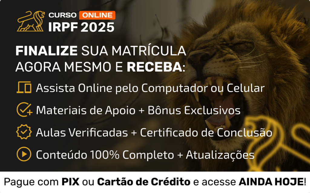 Leve junto um curso completo de imposto de renda para investidores 2025, somente nessa página com 68% de desconto!