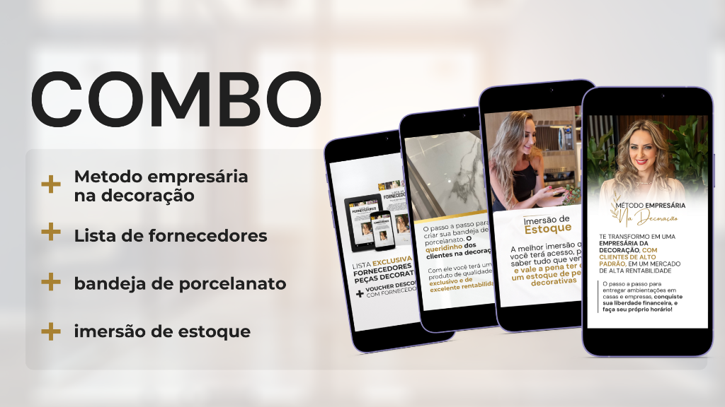 Combo: Método Empresária na Decoração + Lista de Fornecedores + Bandeja de Porcelanato + Imersão de Estoque