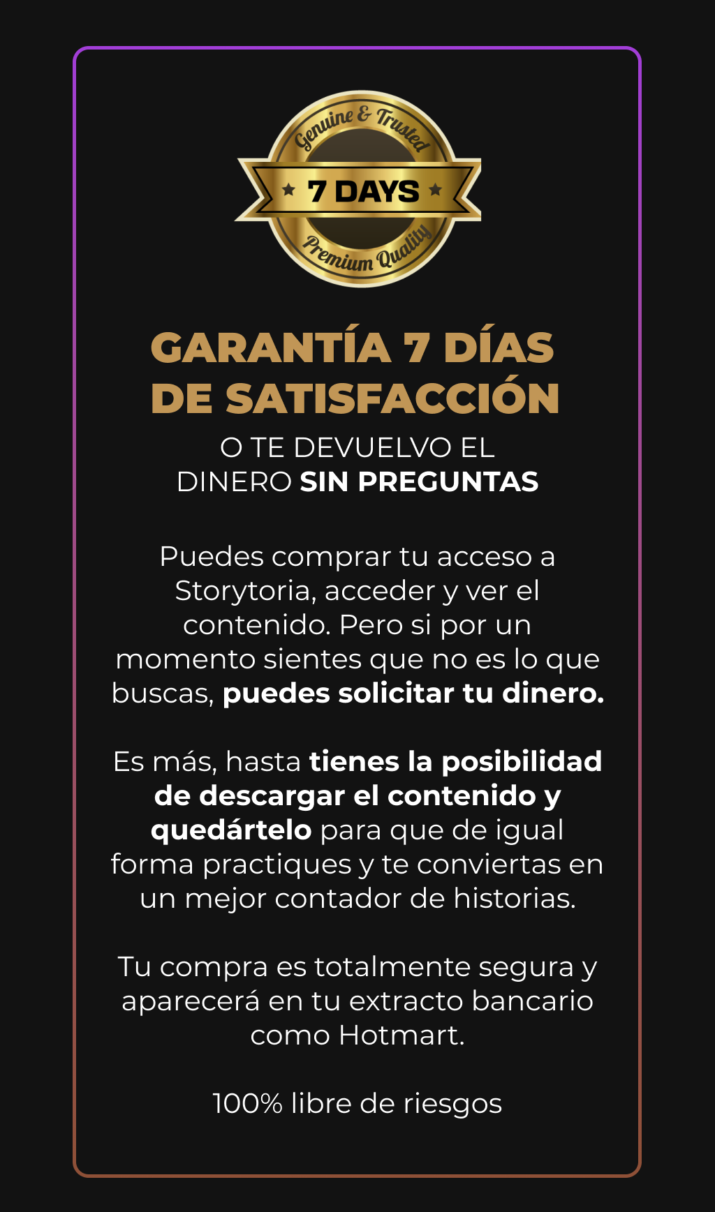 Oferta única de preventa Accede a mi nuevo ebook para que aprendas el arte de contar historias. Tendrás un paso a paso para que en 15 días desarrolles una habilidad de alto valor. Sé una persona magnética e imposible de ignorar. (Tendrás actualizaciones)