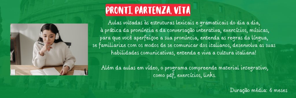 Pronti, partenza, V.Ita - aulas de italiano do básico ao avançado