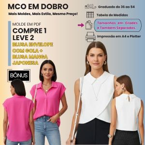 MCO EM DOBRO: Compre 1 e Leve 2 - Molde Blusa Envelope com Gola + Bônus de Blusa Manga Japonesa com Gola”
