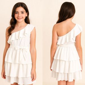 MOLDE VESTIDO BABADINHOS OMBRO ÚNICO INFANTIL REF 2877 - GRADE 1 A 14 ANOS