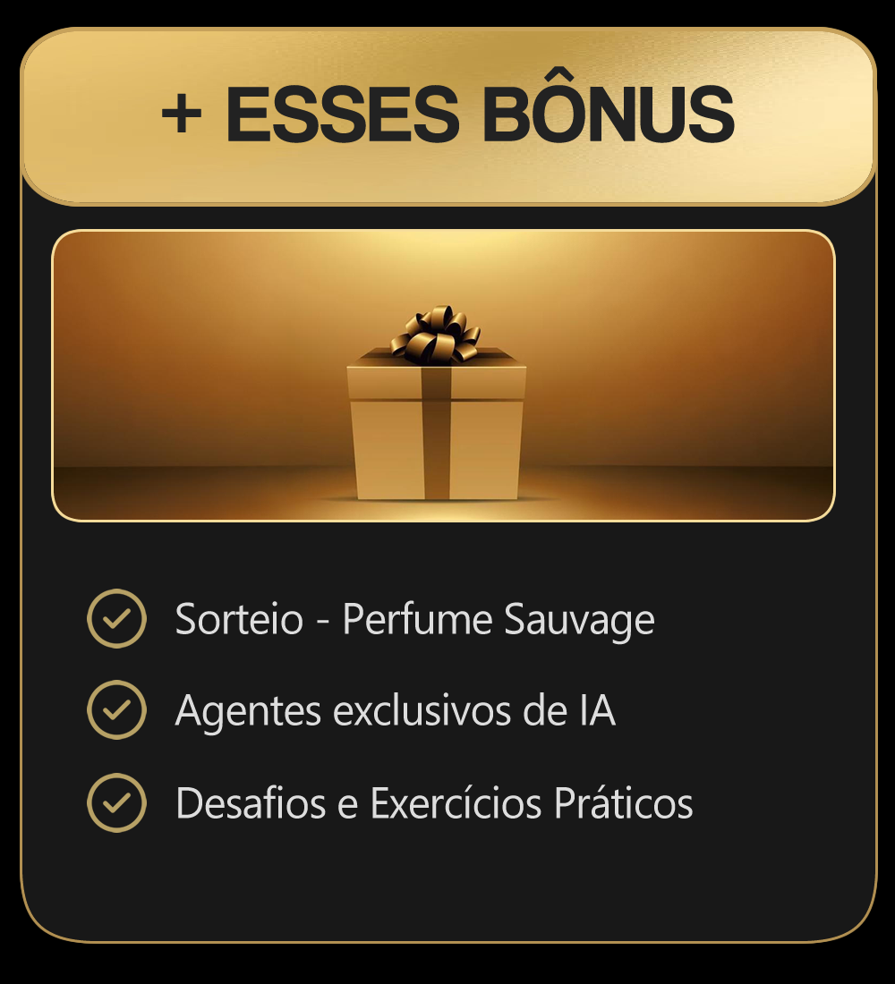 NÃO ESTARÁ DISPONÍVEL APÓS A IMERSÃO! Você terá acesso às gravações do evento, organizadas em aulas estruturadas, junto com todos os materiais utilizados, para assistir e revisar sempre que precisar, sem depender apenas das anotações feitas ao vivo. Serão cerca de 16 horas de aprendizado intenso e aplicável. E a melhor parte? O valor investido volta para você como cashback, que poderá ser usado na próxima turma de Mentoria!