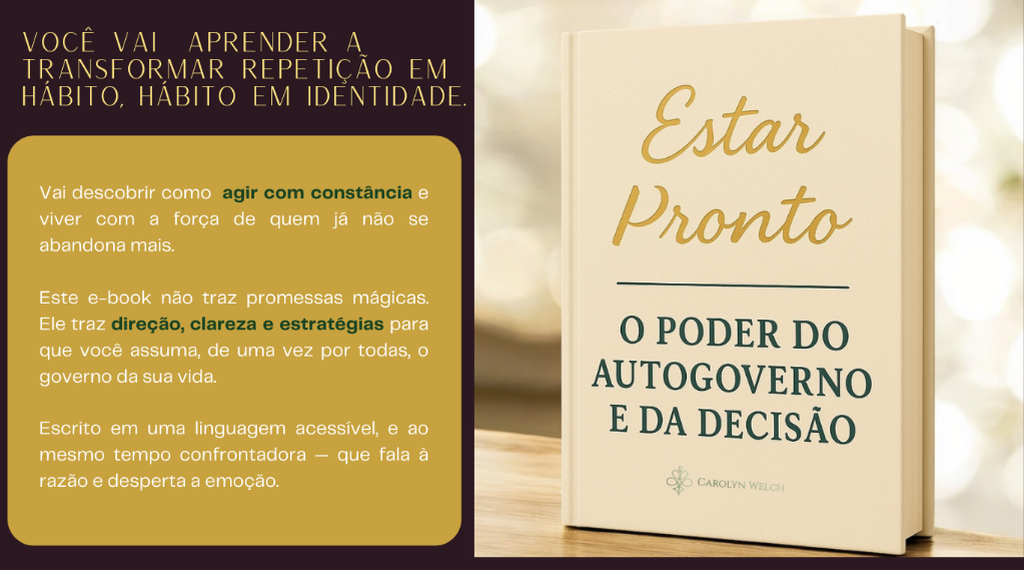 🌟 Complete sua jornada agora! Você já vai dominar o poder da decisão e do autogoverno. Mas imagine ter também em mãos o guia que revela como a sua identidade é a estrutura da sua verdadeira riqueza. Com Sua Identidade e a Estrutura da Sua Riqueza, você terá clareza para construir uma vida próspera de dentro para fora — unindo propósito, capital pessoal e direção. 👉 Adicione agora este complemento essencial por um valor simbólico e leve sua transformação ao próximo nível!