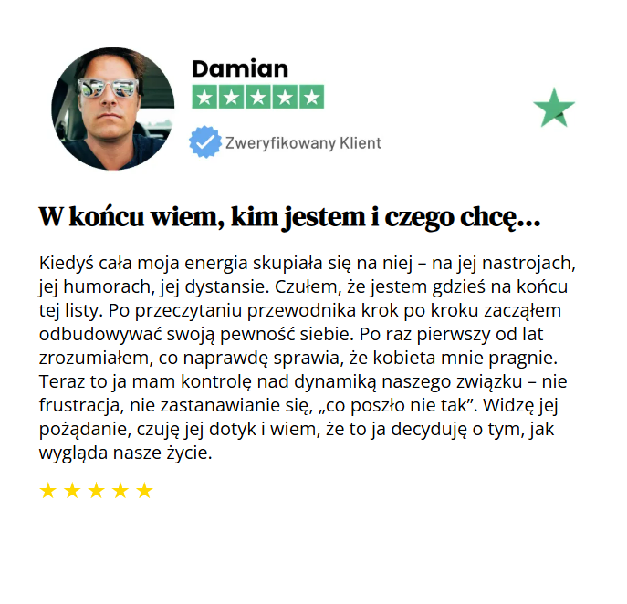 ✅ Jedno proste działanie dziennie, które przywraca Twoją atrakcyjność – zobaczysz, jak zaczyna Cię pragnąć szybciej, niż myślisz ✅ Sprawdzone psychologiczne techniki, które przejmują kontrolę nad namiętnością – nawet jeśli związek wydawał się martwy ✅ Błędy, które zabijają pożądanie – unikniesz pułapek 90% mężczyzn w długich związkach 🎁 BONUS: eBook Jak Uprawiać Świetny Seks W Stałym Związku: 🔥 Dodaj pakiet do zamówienia i przejmij kontrolę TERAZ i odzyskaj jej namiętność.