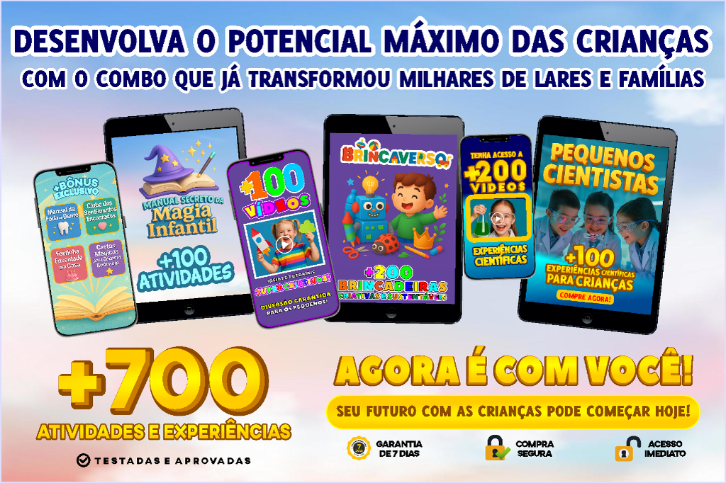 Transforme qualquer cantinho da sua casa em uma sala de aprendizado e diversão! Com o Guia de +50 Atividades Pedagógicas, seu filho aprende brincando, desenvolve habilidades e cria memórias inesquecíveis longe das telas