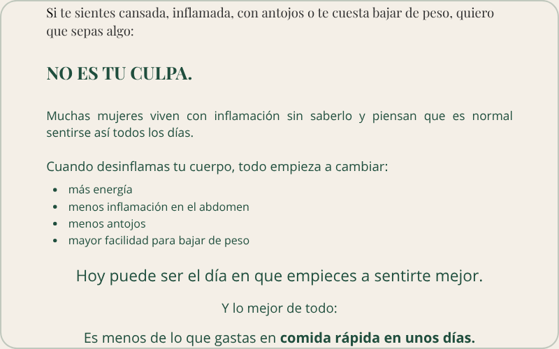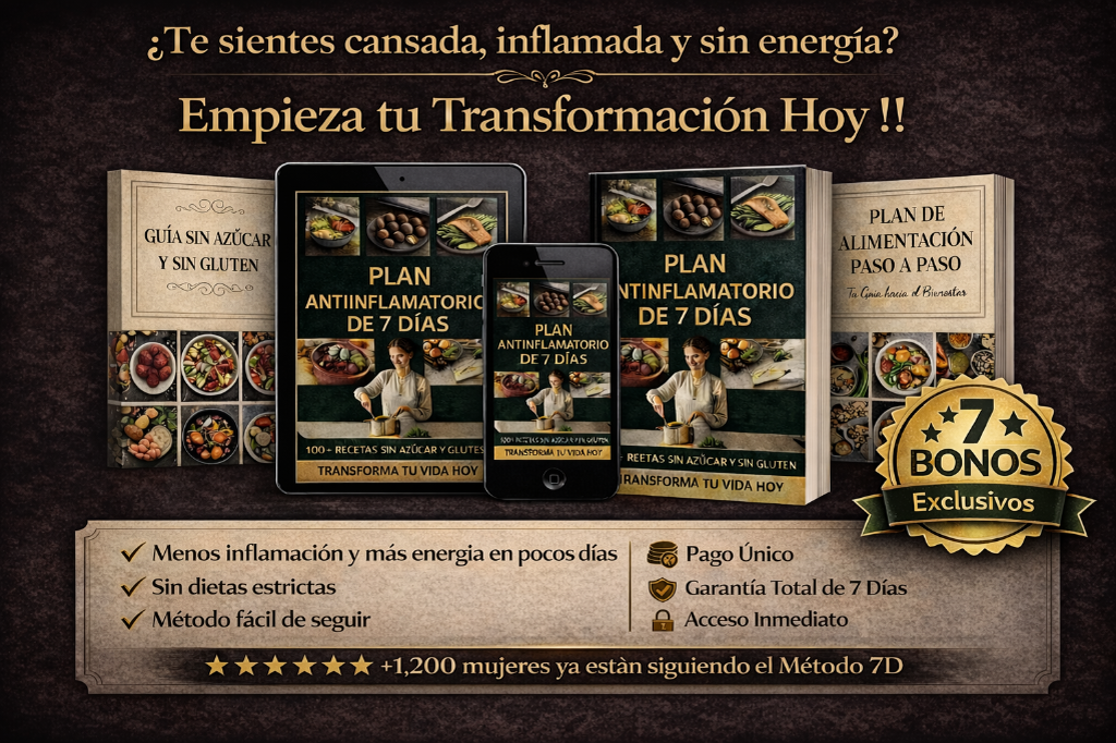 Un programa claro y estructurado para reducir la inflamación, mejorar tu bienestar y recuperar energía en solo 7 días. Incluye pautas sencillas, alimentación consciente y hábitos prácticos que puedes aplicar desde el primer día, sin complicaciones y con r
