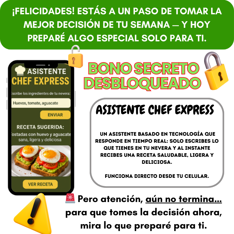 Un solo paquete con todo lo que necesitas para comer saludable y sin complicaciones. Incluye 50 Recetas Saludables en Airfryer, 10 Ensaladas Frescas + 10 Salsas Irresistibles y el Supermercado Inteligente™, la lista mágica de compras para organizar tu mes con facilidad. Ideal para quienes desean ahorrar tiempo, disfrutar comidas deliciosas y mantener una alimentación equilibrada sin esfuerzo.