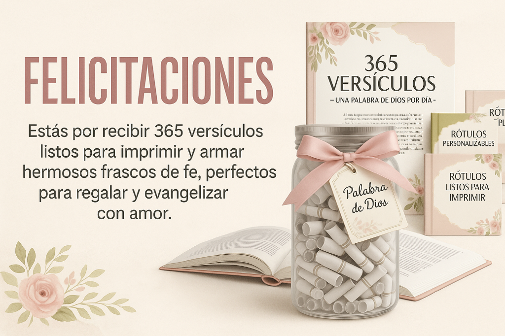 365 motivos para agradecer es un hermoso recordatorio diario de que siempre hay razones para reconocer la bondad de Dios, valorar lo que tenemos y vivir con un corazón lleno de gratitud. Este material está diseñado para ayudarte a crear un hábito de agradecimiento, fortalecer tu fe y traer paz a tu mente y tu hogar. Cada día recibirás una frase inspiradora que te recordará lo bendecido(a) que eres y te motivará a mirar la vida con esperanza, amor y propósito. Ideal para tu devocional personal, tu hogar, tu familia o para regalar a alguien especial como un detalle lleno de luz y fe. ✨ Qué incluye ✅ 365 mensajes de gratitud e inspiración ✅ Archivo imprimible para usar cada día del año ✅ Diseño delicado y elegante ✅ Perfecto para journals, frasquitos de gratitud y devocionales ✅ Compatible para imprimir o usar digitalmente 🎁 Perfecto para 🌸 Tu rutina espiritual y devocional 🏡 Crear un “frasquito de gratitud” en casa 👨👩👧 Compartir con familia, amigos o pareja 🎁 Regalos con propósito 📖 Momentos de oración y reflexión diaria 🙏 Ministerios, grupos de mujeres y discipulados 📎 Formato 📂 Producto digital (PDF) ⏳ Acceso inmediato 🖨️ Listo para imprimir 🌟 Una vida agradecida, una vida bendecida Pequeños recordatorios diarios pueden transformar tu corazón, tu ánimo y tu relación con Dios. ✨ Empieza hoy tu camino de gratitud y paz interior.
