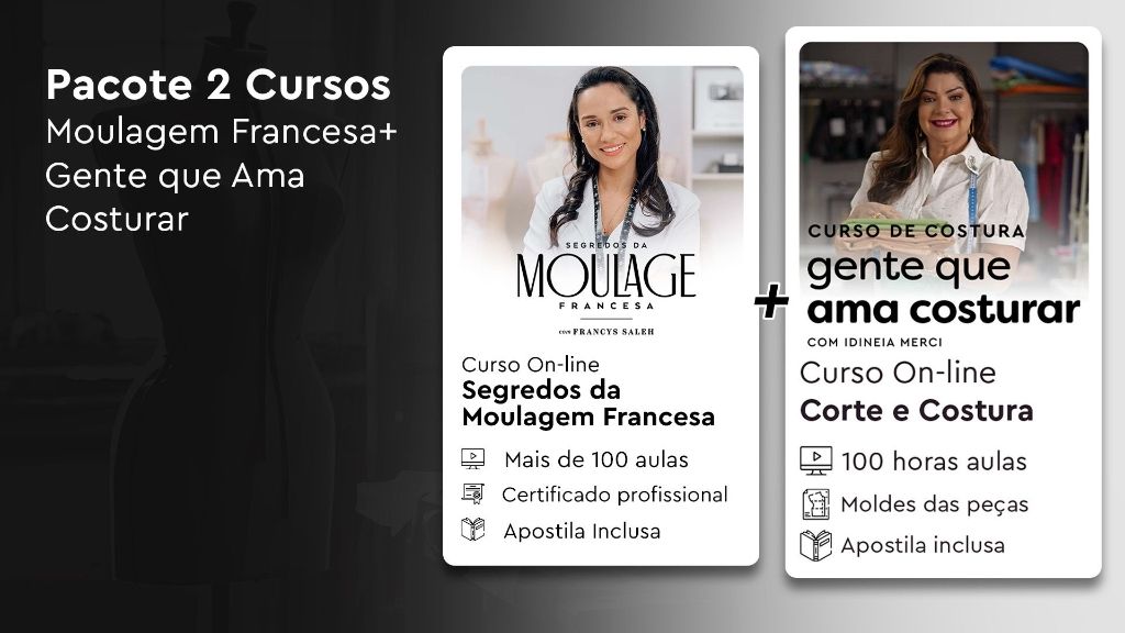 Pacote 2 Cursos - Segredos da Moulage Francesa & Gente que Ama Costurar
