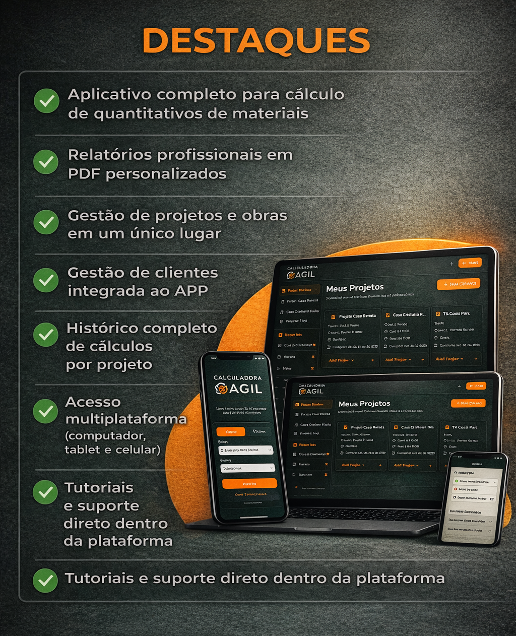⚠️ 83% dos usuários da Calculadora Ágil adicionam este pack complementar para profissionalizar a entrega ao cliente. Com o Pack Obra Profissional – Do Cálculo à Entrega, seus levantamentos deixam de ser apenas números e passam a ser documentos técnicos, organizados e confiáveis. 📄 Inclui 5 modelos editáveis: Proposta Comercial Contrato de Prestação de Serviços Ficha de Vistoria Termo de Recebimento Termo de Quitação Técnica Mais credibilidade, profissionalismo, valor percebido e menos riscos