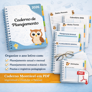 Caderno de Planejamento Montável em PDF O Professor no Controle 2026 é um caderno de planejamento em PDF, criado para ajudar professores a organizar todo o ano letivo com mais clareza e menos estresse na rotina.