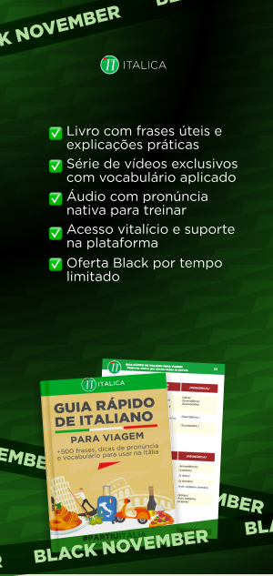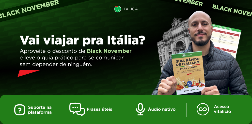 Aproveite a oferta exclusiva de black friday e leve o curso L'italiano Musicale com 26% de desconto! Aprenda italiano ouvindo músicas, com uma condição nunca antes feita.