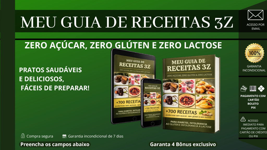 Eleve ainda mais sua experiência com o Meu Guia de Receitas 3Z adicionando o PÃES 3Z ao seu pedido. São mais de 80 receitas de pães liberados, para você ter variedade no café da manhã, lanches e refeições do dia a dia — tudo sem açúcar, sem glúten e sem lactose. Perfeito para quem: ✅ Tem restrições alimentares ✅ Quer mais opções no dia a dia ✅ Não abre mão de sabor e maciez ✨ Marque a opção abaixo e transforme sua rotina com pães saudáveis e deliciosos.