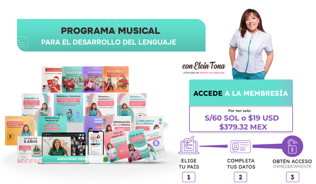 Por el pago de la Membresía Musical, solamente aquí tienes la oportunidad de adquirir con un 80% de descuento un RETO DE 10 DÍAS, en el que cada día te brindaré una guía clara para potenciar y acelerar el desarrollo del lenguaje de tu hijo/a desde este mismo mes.