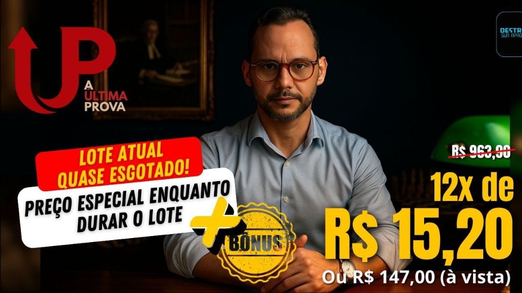 QUERO MEU COMBO ESTRATÉGICO DE ENGENHARIA REVERSA! O curso A ÚLTIMA PROVA te dá o mapa tático e o BOX ESTUDO REVERSO entrega as armas para a guerra. Domine as 5 matérias base que mais reprovam candidatos (Português, RLM, Informática, Constitucional, Administrativo) com o método de estudo reverso em 3 passos: 1) Teste cego de questões; 2) Análise comentada; 3) Resumo estratégico do tópico. Esta oferta é única e exclusiva para alunos deste checkout. NÃO DEIXE DE LEVAR ESSA VANTAGEM COMPETITIVA!