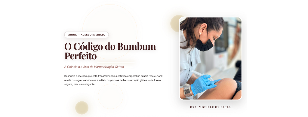 O Método Bumbum Sem Segredos é a formação criada a partir da experiência real da Dra. Bumbum em mais de 1.200 procedimentos de harmonização glútea. Com aulas diretas, materiais exclusivos e orientação prática, o método te entrega tudo o que você precisa para se tornar uma referência na área.