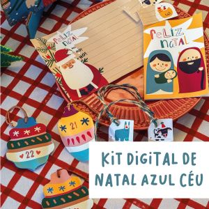 Adicione ao seu pedido o Porta-Suporte de Mesa Azul Céu. É digital, fácil de montar e combina perfeitamente com o pôster do Kit Digital de Natal.
