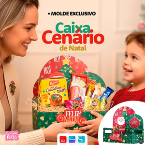 Molde Caixa Cenário de Natal - Molde limpo no CANVA e temático Natalino