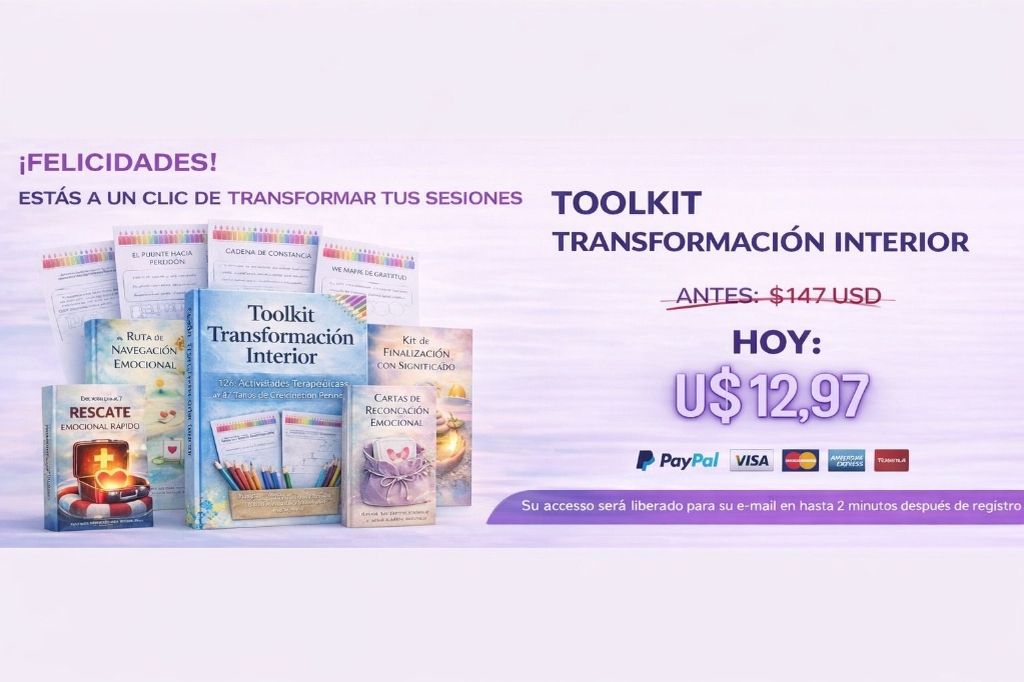 Todo el kit por mucho menos: Círculos de Sanación + Soltar sin Culpa + 25 Plantillas Terapéuticas + 100 Mandalas para Colorear + EXTRA: 100 Preguntas para Sesiones Profundas. Más herramientas para transformar tus sesiones.