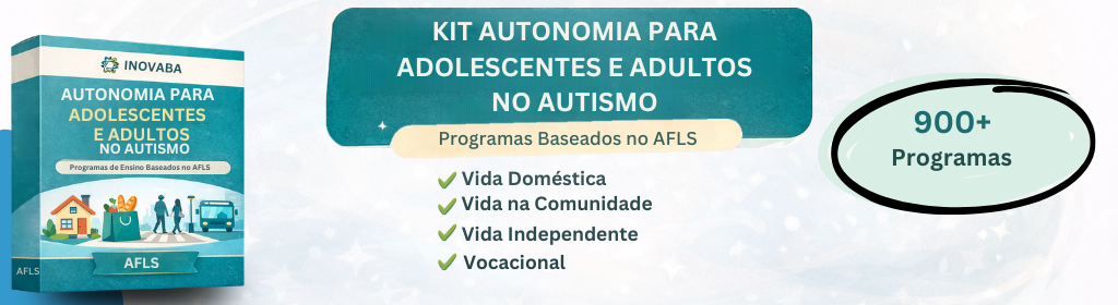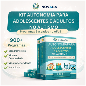 Adicione também o Kit Desenvolvendo Autonomia no Autismo 225 programas de ensino baseados no AFLS para desenvolver habilidades básicas de autonomia e vida diária. Inclui ensino de: Autogestão e cooperação com regras; Comunicação básica funcional; Vestir-se e organizar roupas; Uso do banheiro; Higienização e cuidados pessoais; Rotina de banho; Rotinas noturnas; Saúde, segurança e primeiros socorros. Bônus: programas base de tolerância.