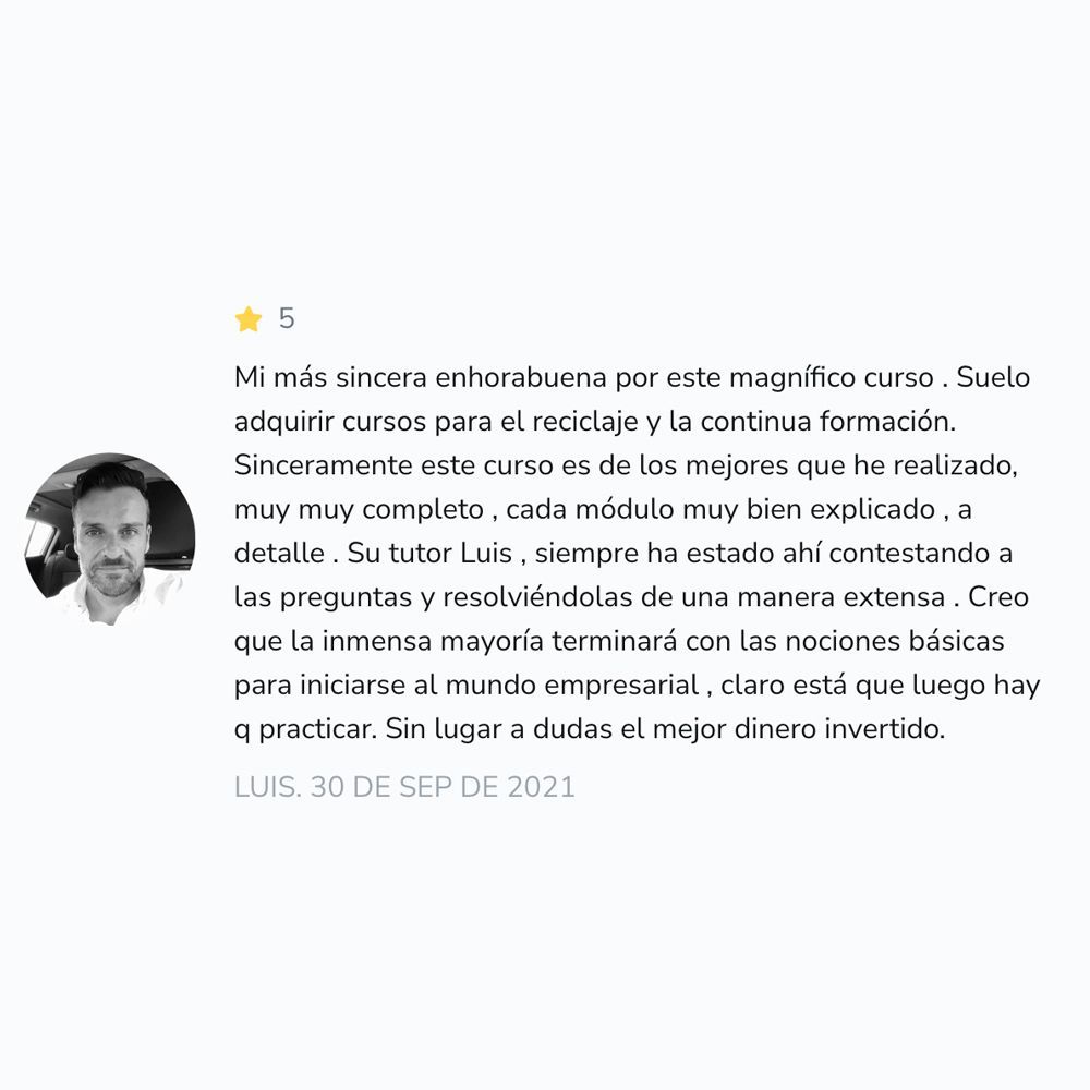 Si en los primeros 7 días de haber comprado el curso decides no continuar, te devolvemos el 100% del dinero. En la plataforma del curso hay una opción para solicitar reembolso, das dos clics y listo. La solicitud de reembolso se debe hacer en los primeros 7 días después de la compra.