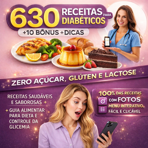 630 RECEITAS PARA DIABÉTICOS ZERO AÇÚCAR, GLÚTEN, LACTOSE & LOW CARB + 10 BÔNUS EXTRAS